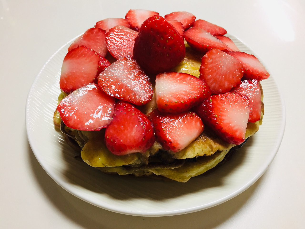 딸기를 좋아해서 자주 사먹는 편입니다. 홍콩에서 친구가 보내준 핫케이크 가루로 요리를 하면서 카페 분위기를 내고 싶어서 해봤어요. 사진상으로 보이지는 않지만 5단입니다. 맛있었어요. 칼로리를 걱정하며. 이거 먹은날 홈트를 처음으로 해봤어요. 이제 운동을 해야할 것 같아요.