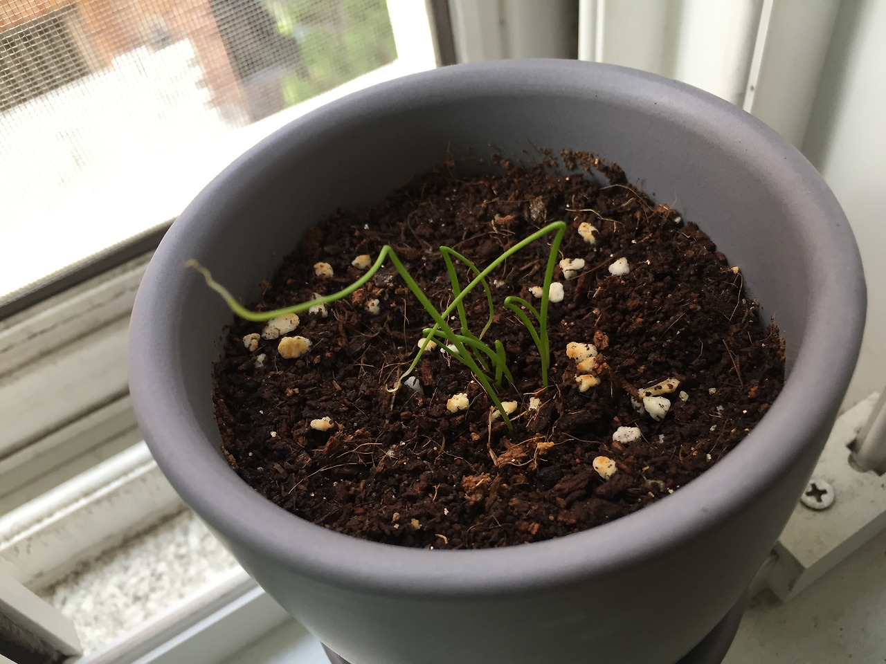 부추는 부추전을 좋아한다는 이유만으로 바질 씨앗 옆에 있길래 시도.