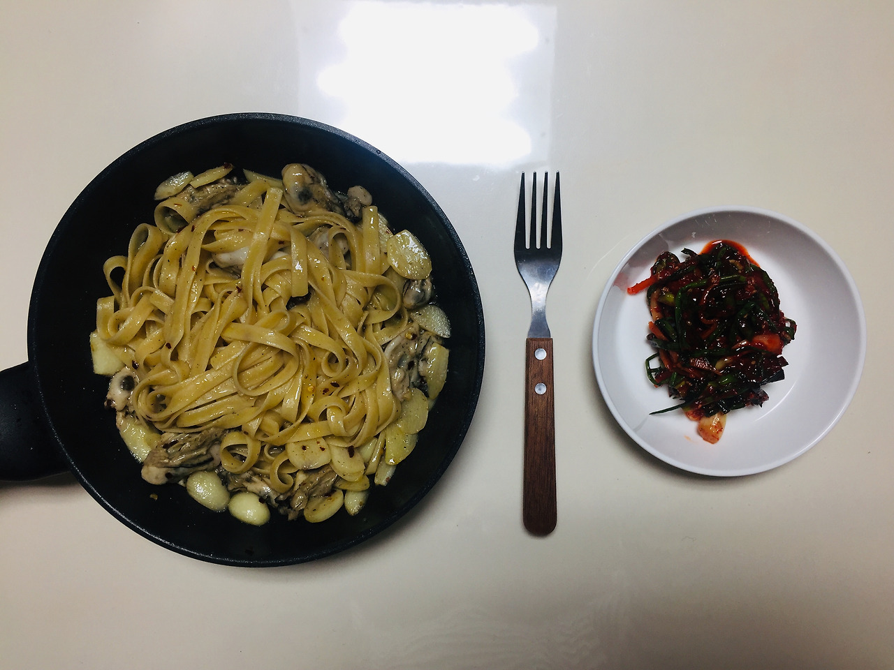 방금 먹었다. 냉동시켜둔 굴을 해동하고, 마늘을 10개는 넣은 것 같다. 올리브오일도 완전 많이 넣고. 히말라야 핑크솔트로 간을 했다. 웃기지만, 알리오올리오를 파김치와 함께 먹으면 더 맛있다. 좀 짰는지, 후식으로 초코송이를 먹었다.
