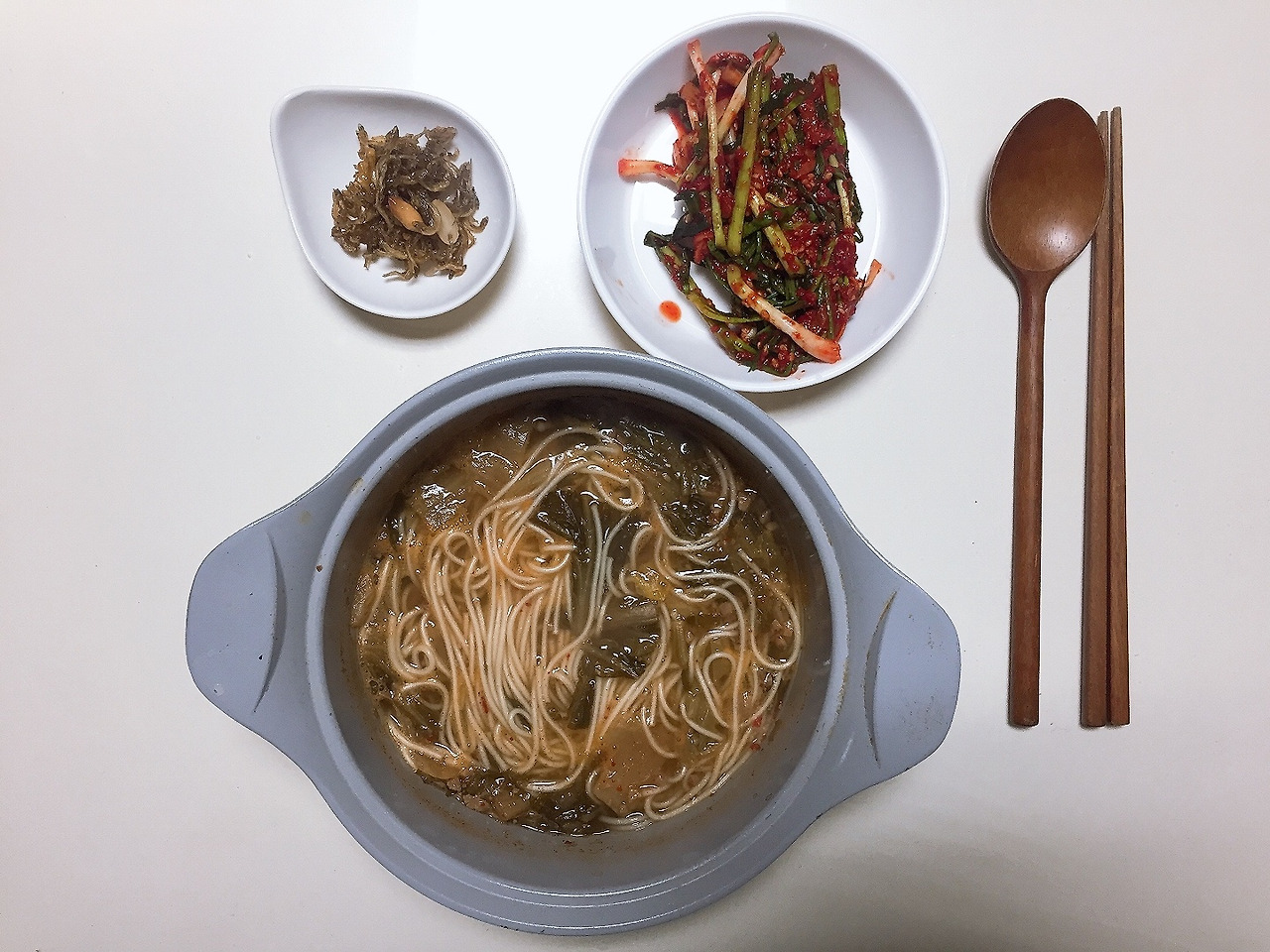 이날 침실에 곰방이를 없애고 가구를 재배치하느라 힘들었다. 배는 고팠지만 요리는 하기 귀찮았다. 그래서 남은 국에 중면을 삶아서 된장국수를 해먹었다. 썩 맛있지는 않았지만 먹을만은 했다.