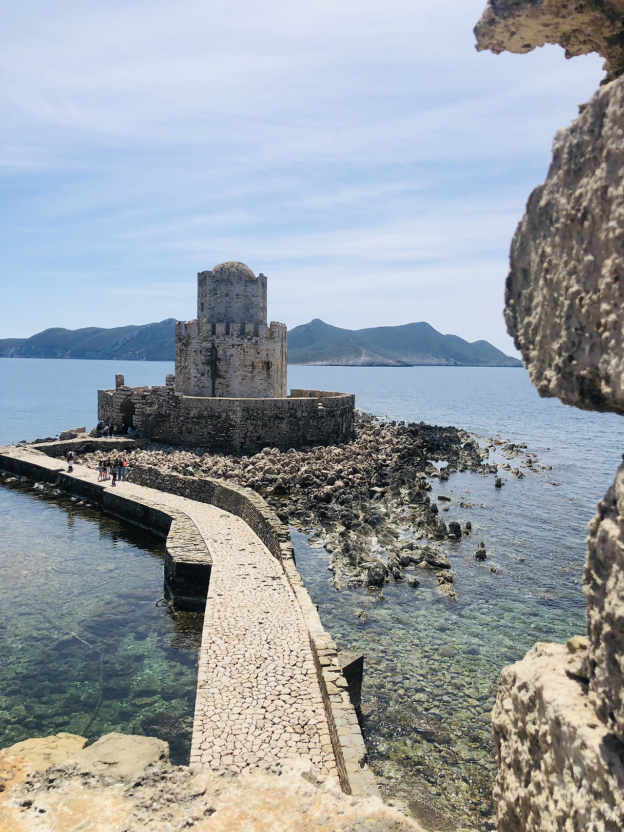 바다로 이어진 성채 쪽으로 뚫린 문을 지나면 메토니 캐슬로 이어지는 돌길이 나온다. 육지와 분리되어 있는 바위 위에 지어진 메토니 성까지 걷다 보이는 항구와 성채의 풍경은 이전에 보지 못한 새로운 광경이다. 바위에 부딪히는 물소리와 항구의 새소리가 완벽한 하모니를 이루며 독특한 분위기를 만들어낸다.