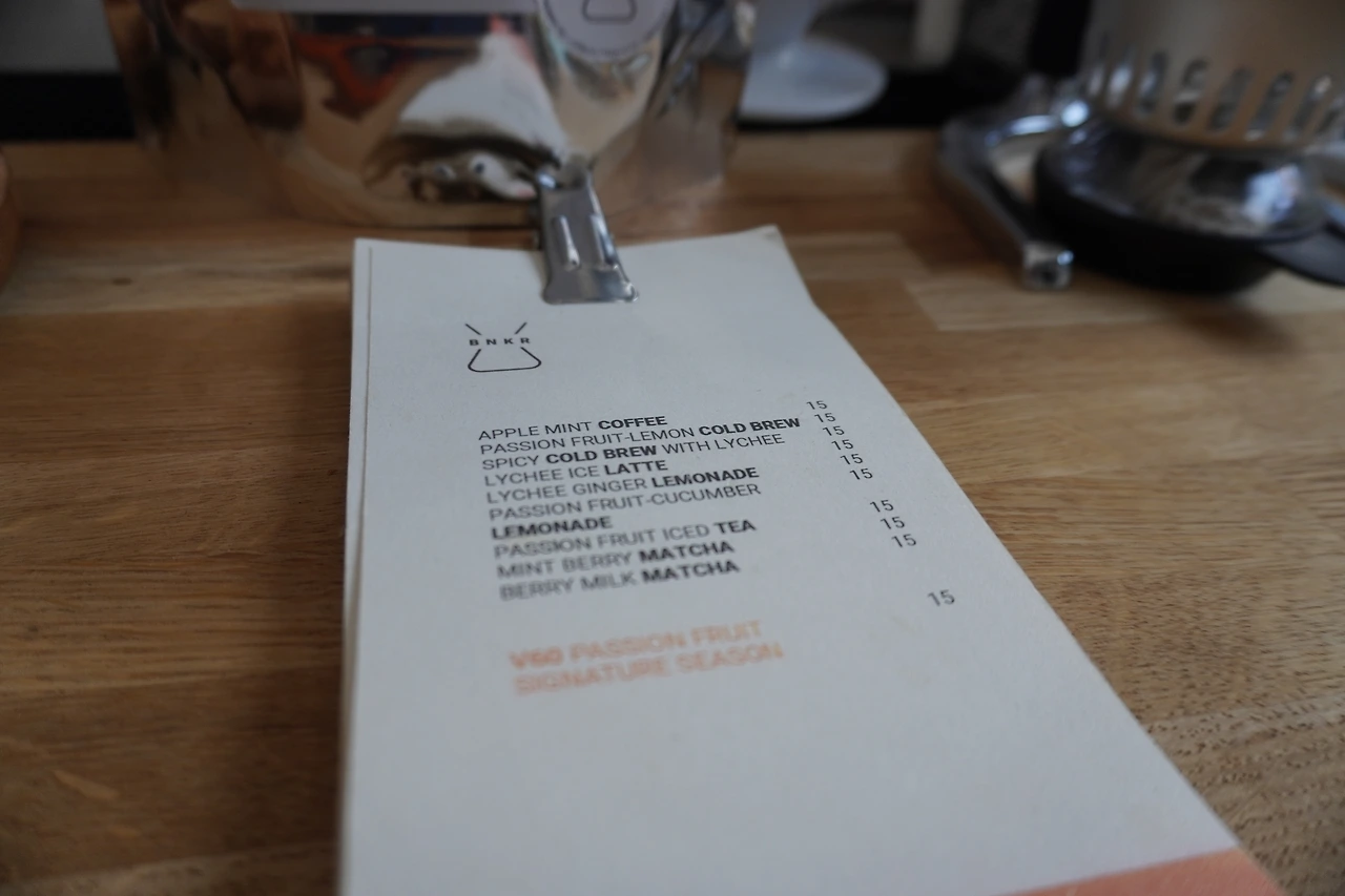 하리오 v60으로 내린 패션 프루츠 시그니처 커피를 추천하길래 마셔봤는데 먼저 과일을 셔벗 형태로 만들어 놓은 것을 드립퍼에 한두 스푼 넣고 그 위에 그라인딩 한 원두를 부었다. 진한 산미와 스파이시한 향미가 입안 전체를 감쌌다. 핸드드립 외에 이 가게의 시그니처 음료로 애플 민트 커피라는 것이 있어서 뭐냐고 물었더니 애플 민트 시럽에 커피를 넣은 것인데 좀 달다고 했다. 당도를 낮춰서 한 잔 줄 수 있냐고 했더니 시럽 자체가 이미 만들어져 있기 때문에 당도 조절이 불가능하다고 하길래 주는 대로 마셔보았다. 워낙에 애플 민트를 좋아해서 요르단에 갔을 때도 매일 마셨더랬다.