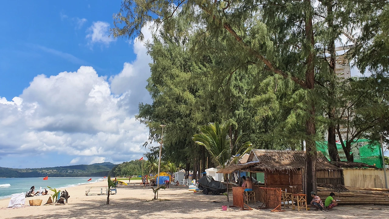 푸껫의 핫스팟인 빠통비치를 기준으로 차로 40분 정도 떨어져 있어 붐비지 않은 여유로움이 장점 이자 단점이다. 하지만 해변 곳곳에 비치바가 있어 걷다 힘들면 쉬다 즐기다 할 수 있다.