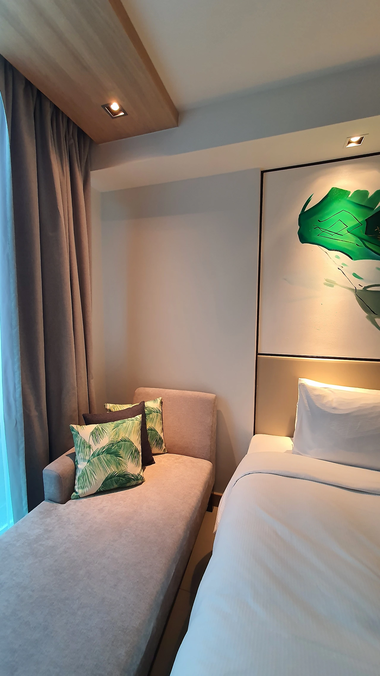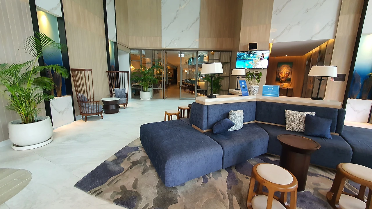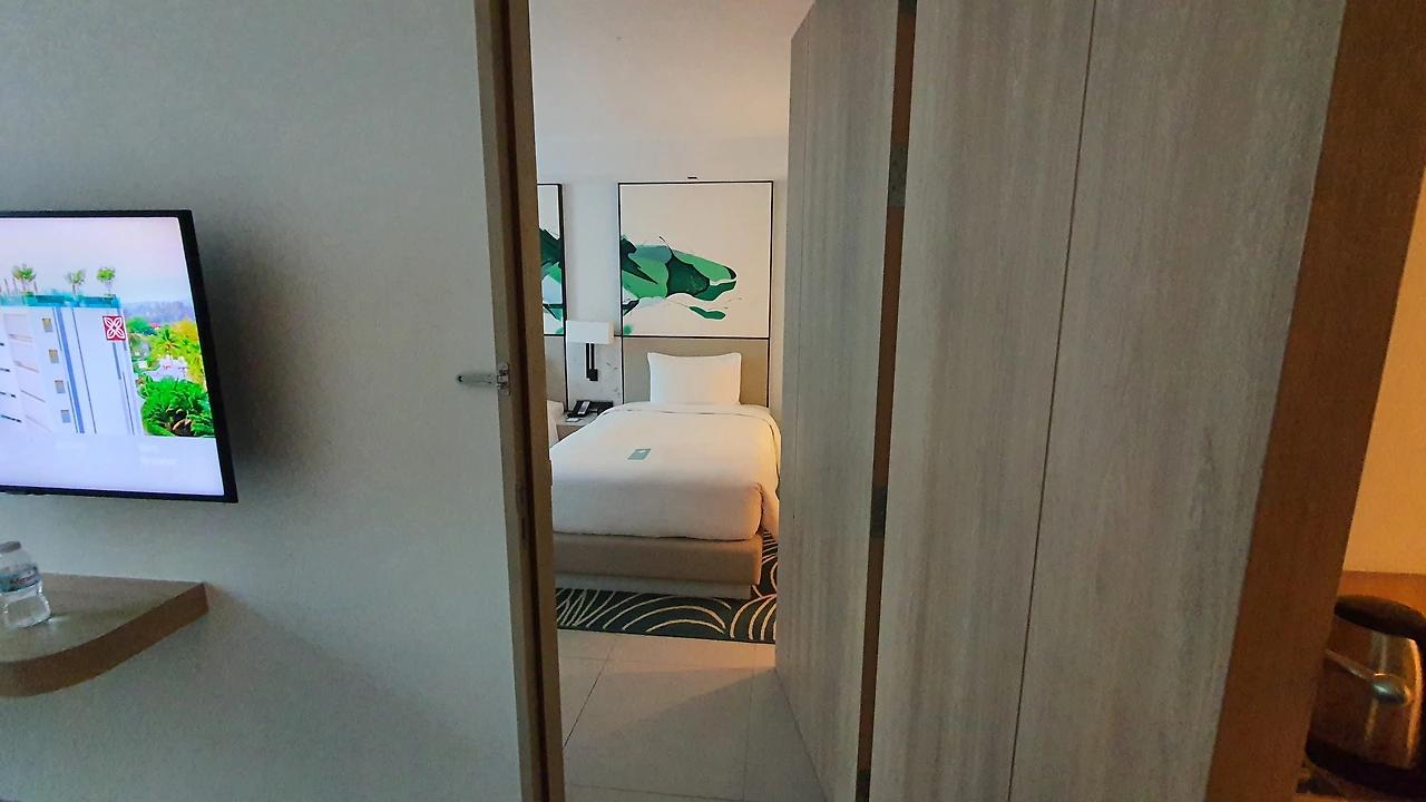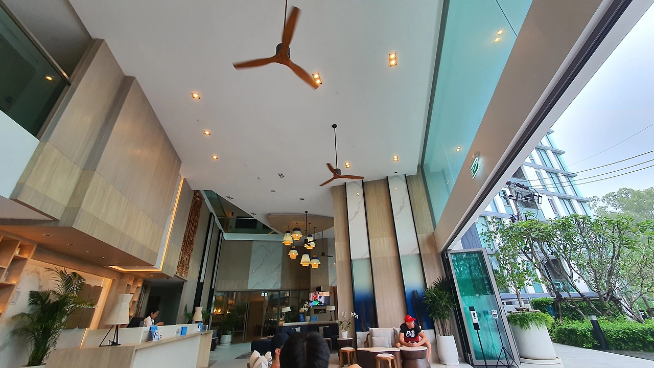 하지만 해변가와 1km 정도 떨어져 어중간한 위치로 호텔 앞 또 다른 레지던스가 있어 객실 내 조망이 제한적이다. 또한 호텔 인근에 도보로 이용할 편의점 및 마트가 없어 야시장이나 메인 스트릿에 아이들을 데리고 다니기에 약간 불편함이 있다.