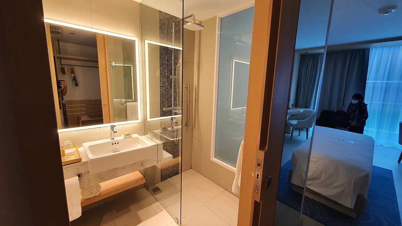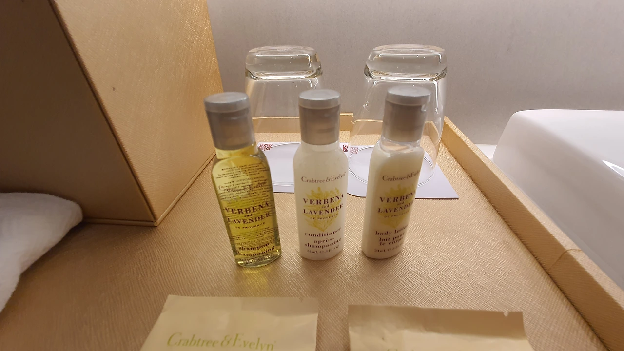 비데와 욕조가 없어 아쉽지만 수압이 높아 온수로 샤워를 하다 보면 반신욕 한 것처럼 개운함을 느낄 수 있다. 어나미티는 친환경인증 때문인지 크랩트리앤이블린의 샴푸, 컨디셔너, 바디워셔만 기본 제공된다. 칫솔은 요청 시 별도 제공되며타월의 위생상태도 깨끗하다.