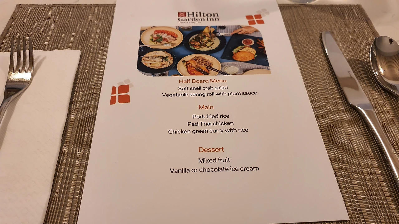 뷔페는 제공되지 않으며 레스토랑 메뉴에 따라 별도의 메뉴로 구성된다. 음식의 맛과 품질은 무난한 수준. 석식 하프 보드 메뉴는 타이 푸드로 스타터 2가지, 메인 3가지, 디저트 2가지 중 하나를 선택할 수 있다.