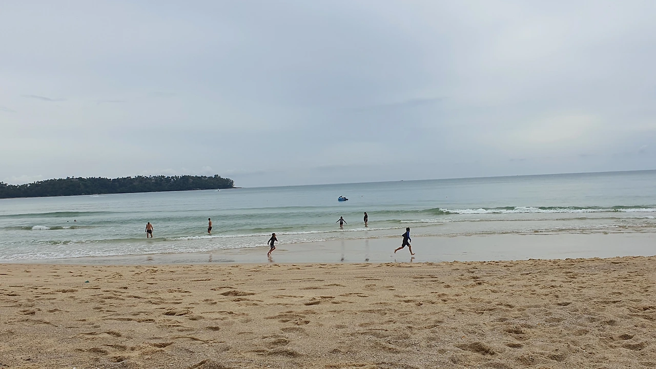 비가 올 것 같은 날씨지만 물놀이를 하러 온 아이들에게는 바다에 젖으나 하늘에 젖으나 매한가지. 미리 챙겨 온 비치타월을 까는 것으로베이스캠프는 간단히 설치 완료됐다. 푸껫은 해수 온도와 외기 온도가 체온과 차이가 없어 물놀이하기에는 최적의 조건이다. 또 모래는 곱고 발을 다치게 할 유리병이나 날카로운 쓰레기도 눈에 띄지 않아 맨발로 뛰어다녀도 아프거나 위험하지 않다.