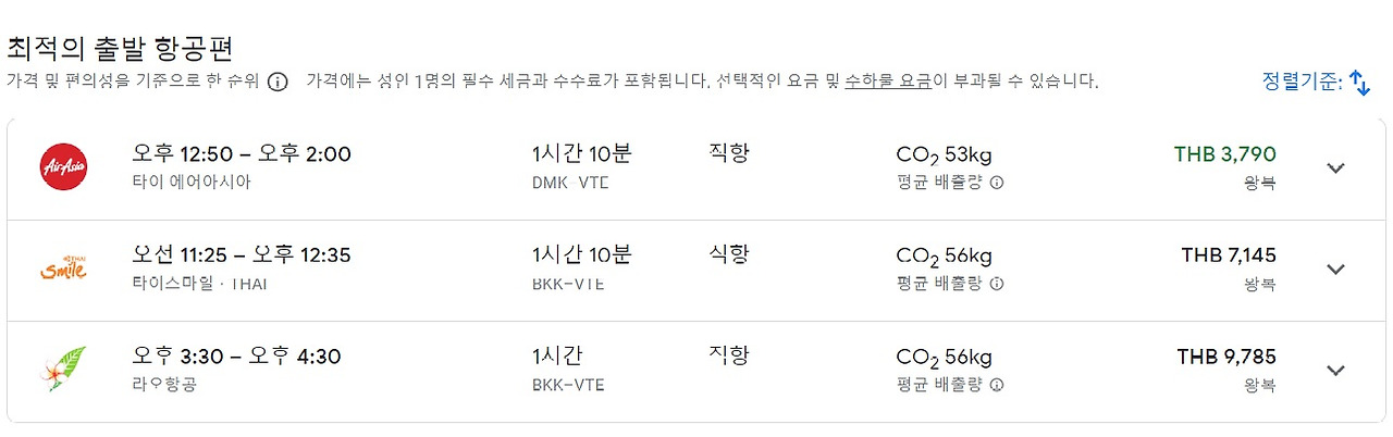 방콕 출발 비엔티안 도착 비행기는 크게 에어아시아, 타이스마일, 라오항공 3곳으로 에어아시아는 방콕 돈무앙공항에서, 타이스마일과 라오항공은 수완나품에서 출발한다. 그중 가장 저렴한 곳은 에어아시아로 가격이 2배 가까이 차이 났다.