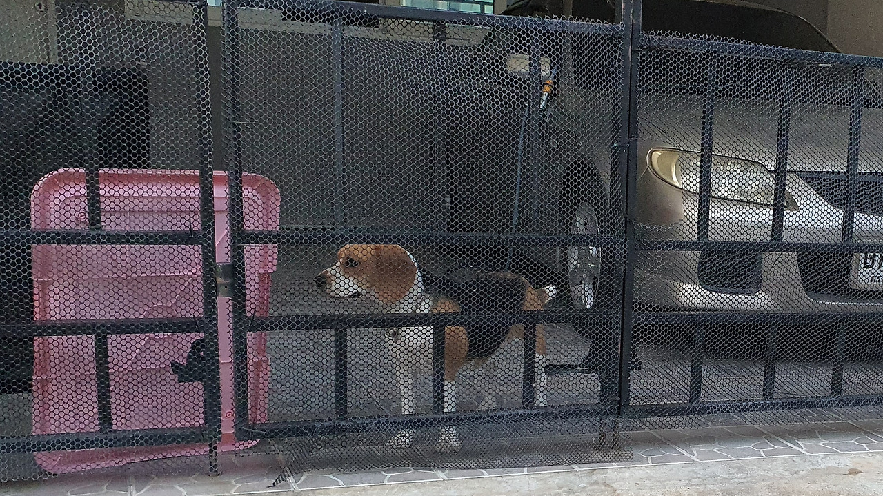 비글의 이름이 '홍'인지, 조용하라는 뜻이 '홍'인지는 잘 모르겠지만 우리는 문제의 비글을 '홍'이라 부른다. 홍은 대문 앞에 딱 달라붙어 사람 놀라게 하는 것을 즐긴다. 사실 그 이유에 대해 우리 가족끼리 의견이 분분했다. 아내는 똑똑한 홍이 집안으로 들어가고 싶어서 의도적으로 우렁찬 목소리로 집 앞에 지나가는 사람만 보면 짖는 것이라 하고, 작은아이는 홍이 짖을 때 사람들이 놀라는 모습이 재미있어 계속 짖는 거라 하며, 나는 홍이 비글의 특성상 뛰어다녀야 하지만 갑갑함에 스트레스를 받아 사람들에게 화풀이를 하는 거라고 다양한 의견이 있었다.