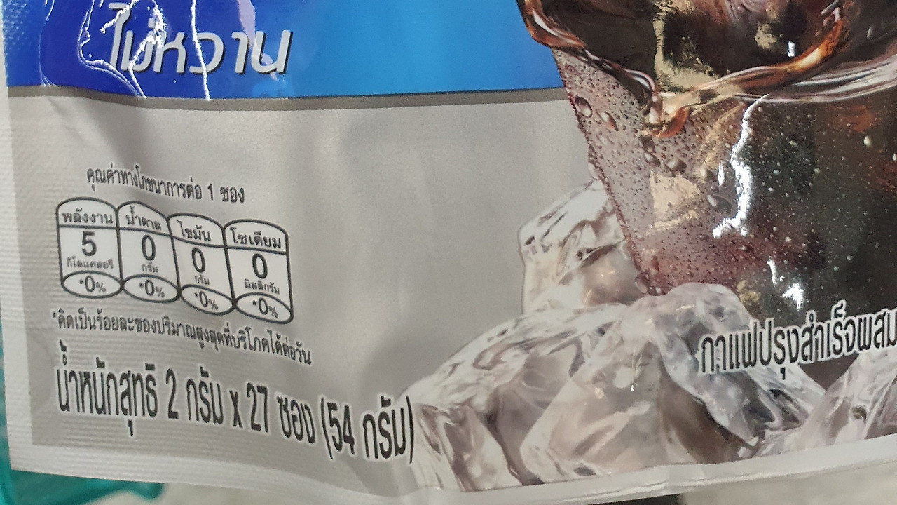 아뿔싸 이런 꿀팁을 알았지만 태국에는 90% 이상이 설탕과 프림이 듬뿍 들어간 믹스커피뿐입니다. 결국 못 찾나 포기하려는 순간 가장 마지막에 있는 커피 매대에서 칼로리 5%에, 설탕, 지방, 나트륨이 0%인 커피를 드디어 발견했습니다. 비록 아이스 아메리카노 제품이지만 뭐... 뜨거운 물에만 잘 녹으면 상관없습니다. 나만의 방식으로 원하는 커피믹스를 찾을 수 있게 되니 스스로 대견할 뿐입니다. 커피도 새로 장전했으니 내일부터 다시 부지런히 일을 사부작 해봐야겠습니다.