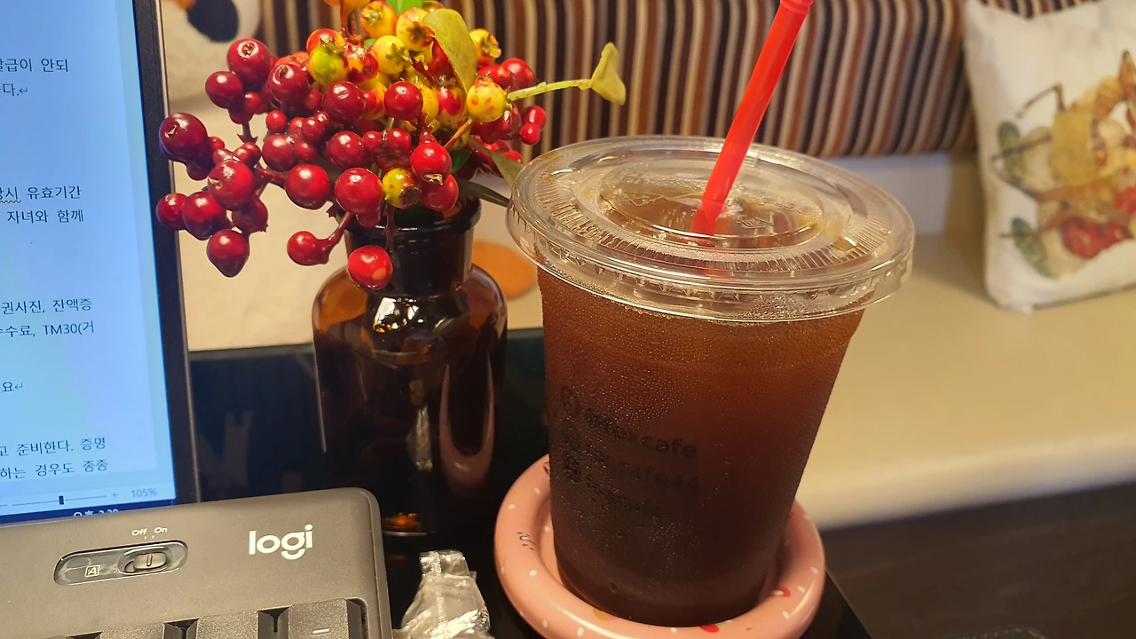 그렇게 오전 10시. 엄마들의 귀가로 분주했던 카페가 갑자기 차분해진다. 이제 글쓰기에 집중해야 하는 시간이다. 어느새 비어있는 핫 라테를 아이스 아메리카노로 분위기를 바꾼다. 부드러운 라테는 머리를 예열하기 위한 애피타이저였다면 메인은 아메리카노. 차갑고 직설적인 카페인은 머릿속에 바로 들어가 각성시킨다. 카페의 반복되는 올드한 캐럴의 순서를 외울 정도지만 맨 구석 조그만 자리는 나를 위한 자리이다. (계속)