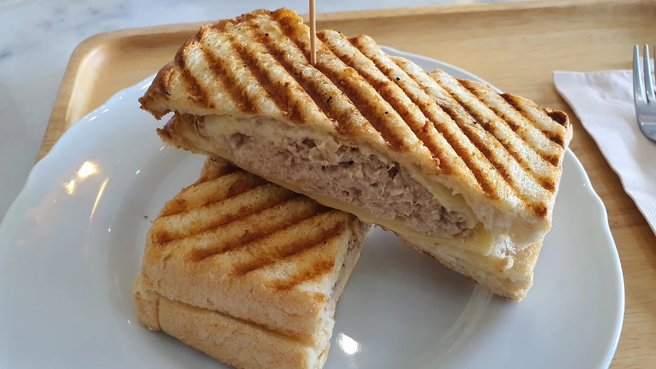 곧이어 투나치츠 파니니가 나온다. 예상했던 쫀득하고 얇은 도우의 번이 아닌 식빵을 이용해 파니니처럼 구운 샌드위치다. 작은 파니니를 예상했지만 대형 식빵에 참치와 치즈가 두툼하다. 참지를 양파와 마요네즈에 함께 샐러드처럼 만들었지만 그 위에 치즈를 올리니 느끼함과 퍽퍽함이 함께 밀려온다.