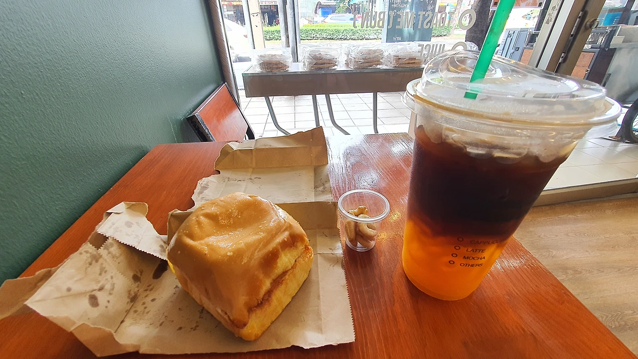 크게 한입 베어 무니 겉은 버터의 가벼운 바삭함과 고소함이 속은 치즈의 진한 진득함과 고소함에 입안은 꼬소함의 폭탄이 번과 함께 터진다. 토스트의 가격은 30밧(1,200원) 브런치로 부족함이 없다. 작은 양은 아니지만 2개도 한자리에서 먹을 수 있을 맛이다.