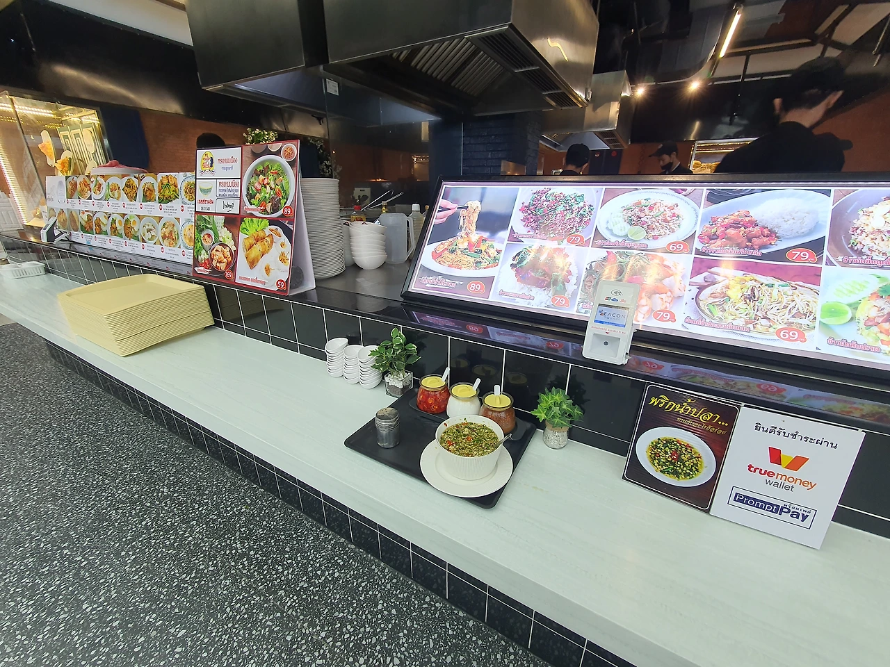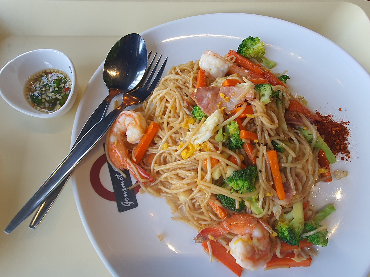 하지만무작정 현지인의 입맛을 따라 고르다 보면 예민한 외국인한테는 미세한 향이라도 거부감이 들 수 있기 때문에 주의해야 한다. 구름에 달 가듯 나그네의 마음은 나그네가 가장 잘 아는 법, 푸드코트에서는 현지에 거주하는 외국인이 선택하는 메뉴가 믿을만하다. 빈자리에 앉아 몇 명을 기다렸을까 마침 운동을 마치고 온 서양남성 한 명이 익숙한 듯 모둠볶음 국수를 주문한다. 요리사와 인사도 나눌 정도니 더욱 신뢰가 간다. 고민할 필요 없이 오늘의 메뉴로 정해 본다.