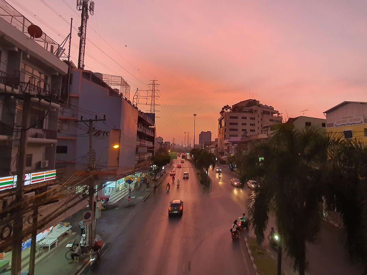 저녁해는 길어 서쪽 하늘에 멋진 석양이 저문다. 모처럼 내린 비로 공기 중의 수증기가 태양을 빛을 보석처럼 빛나게 한다. 노란 노을이 잘 익은 망고의 속살처럼 주황색으로 물들어 가며 태국 5월의 어느 하루도 무사히 마무리된다.