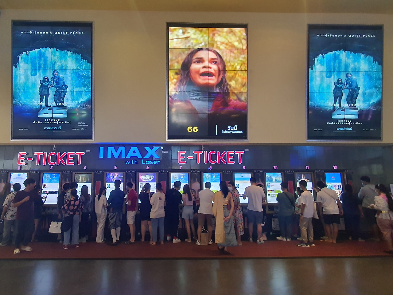 태국의 극장은 시네플렉스라는 대형 극장 체인이 대부분 독점하고 있다. 한국의 극장과 유사하게 약 10여 개의 상영관으로 구성된다. 가격은 일반석, 프리미엄석, 2인 커플석 등 좌석에 따라, 상영시간에 따라, 해외 또는 국내 영화에 따라 차이 난다. 결제는 카드, QR스캔, 현금으로 가능하나 현금 구입 시 소정의 수수료가 부과된다. 비용은 약 300밧(1만 2천 원)으로 태국 서민들이 쉽게 볼 수 있는 가격이 아니기에 상영관의 좌석은 항상 여유가 있으며 주 관람객은 외국인이거나 태국의 중산층이다.