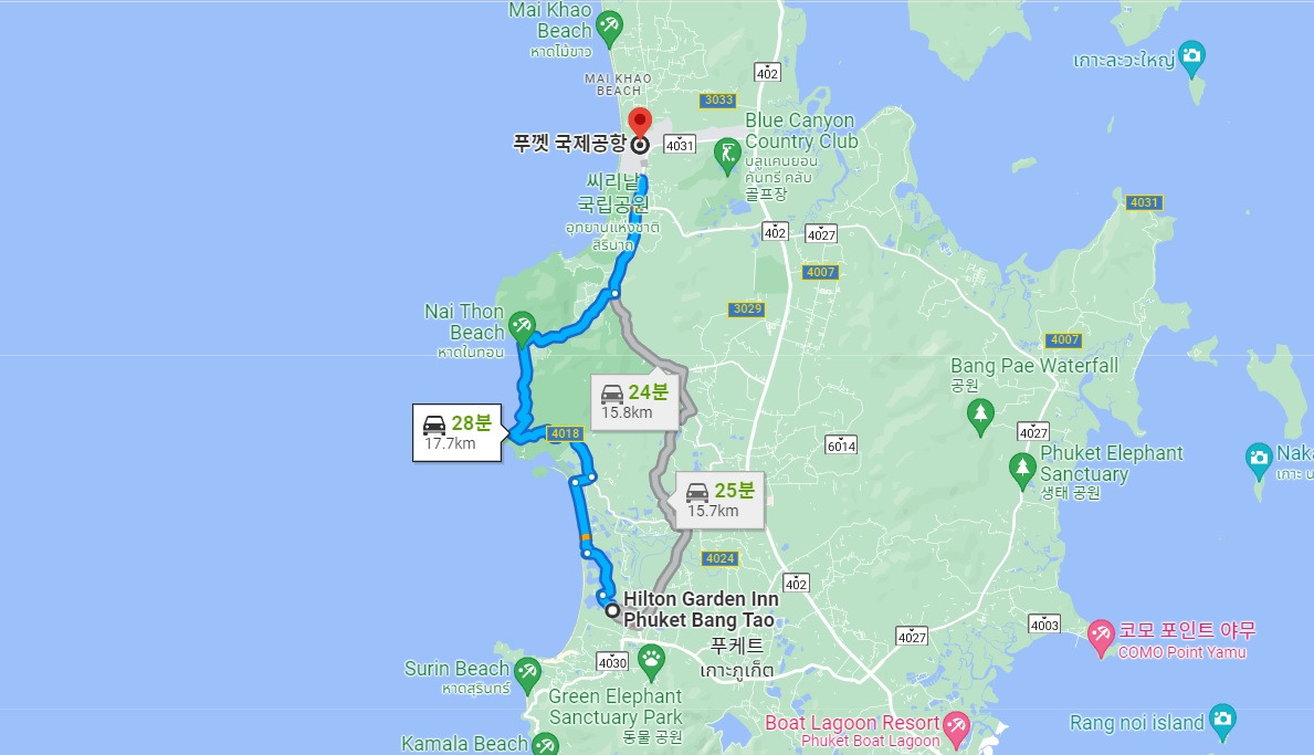 푸껫 공항 - 호텔 소요시간 참조 사진 (구글 지도 캡처)