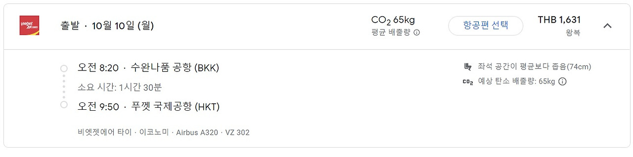방콕 - 푸껫 항공권 참조 사진 (구글 캡처)