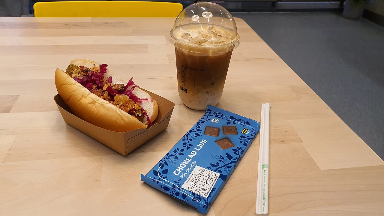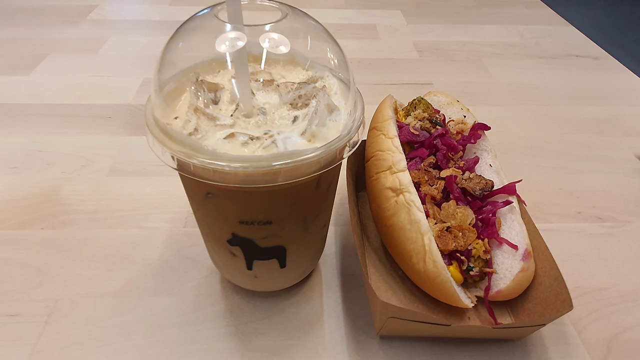 아이스라테를 35밧에 get 하고 함께 먹을 빵을 골라보니 이케아가 핫도그 맛집인 것은 다 아는 사실. 처음 본 베지핫도그를 선택해보았다. 낯선 맛이 예상되었지만 충분히 감당할 수 있는 양이기에 망설임이 없었다.