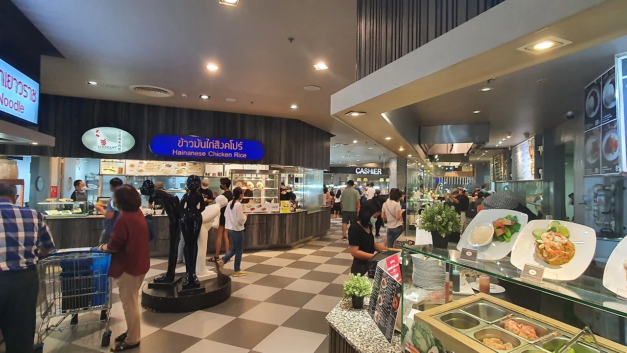 태국 쇼핑의 마무리는 대형마트다. 꼭 물건을 사기 위해 들리는 곳이기보다 잠시 휴식을 필요할 때, 화장실을 이용할 때, 현금을 뽑을 때 등 대형마트를 애용한다. 대형마트에 대부분 푸드코트가 있다. 실내이기 때문에 거리 음식보다는 위생과 재료의 신선함이 낫다. 또 모기, 파리 따위의 벌레들이 많은 야외에서는 제대로 먹기 힘들다. 그래서 아이들과 함께라면 메뉴가 다양하고 시원한 에어컨이 나오는 푸드코트를 플랜 B로 이용하는 편이다.