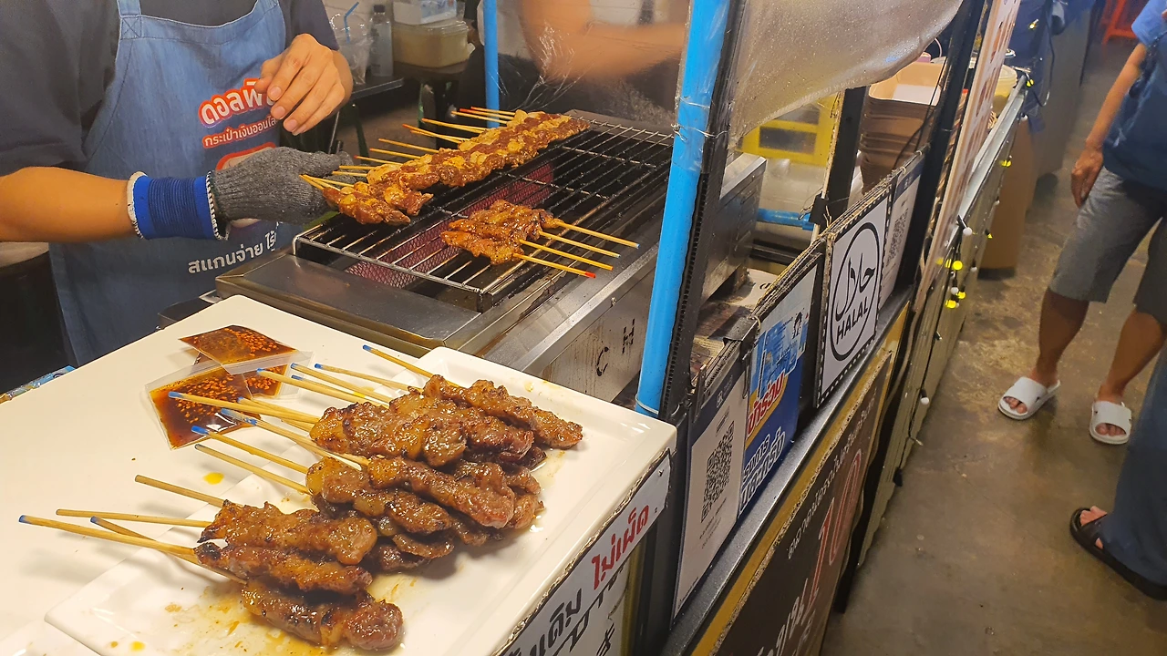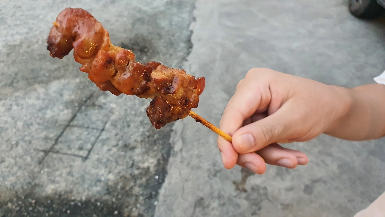 과장되게 표현하면 한국의 언양불고기에 불향을 입힌 느낌. 단점은 1~2입 정도로 작은 크기. 1개당 5밧(약 200원)으로 개별 구입 가능