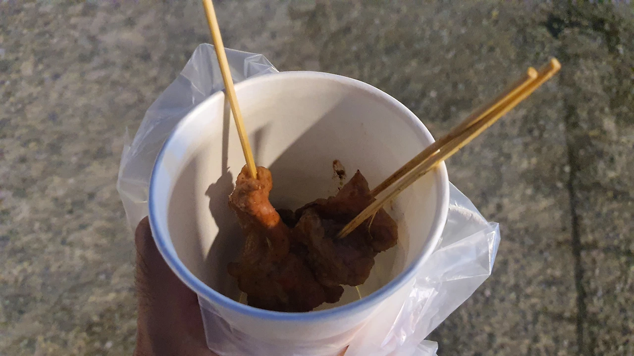 개인적으로 길거리 음식은 위생문제 및 대마 합법화 이슈로 그다지 좋아하지 않는다. 게다가 아이까지 동행하니 더욱더 메뉴 선정에 고민이 되었다. 그나마 길에서 먹기 간편하고 조리과정이 단순한 꼬치구이만 먹어보기로 했다.