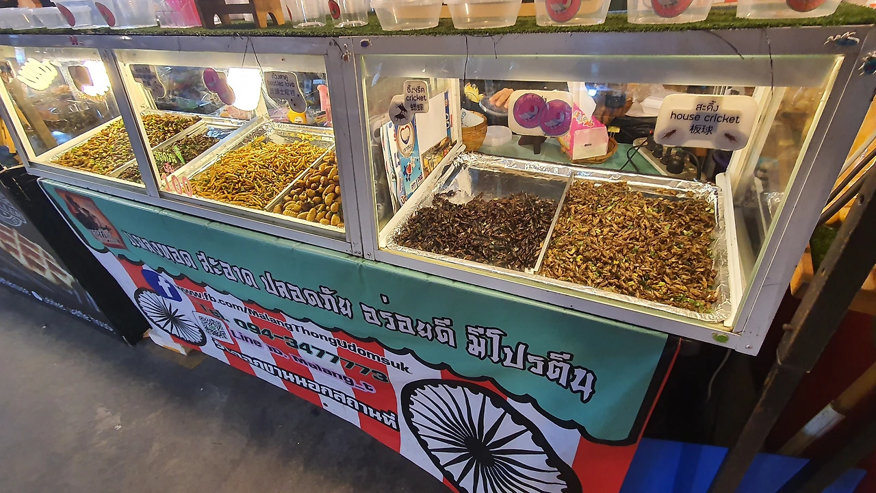 먼저 야시장 한 바퀴를 둘러보니 해산물, 로띠, 곤충튀김, 초밥, 해산물튀김, 타코야끼, 케밥, 치킨, 감자탕, 케이크, 떡볶이, 꼬치 등 다양한 먹거리들을 한자리에서 구경하며 맛볼 수 있다.