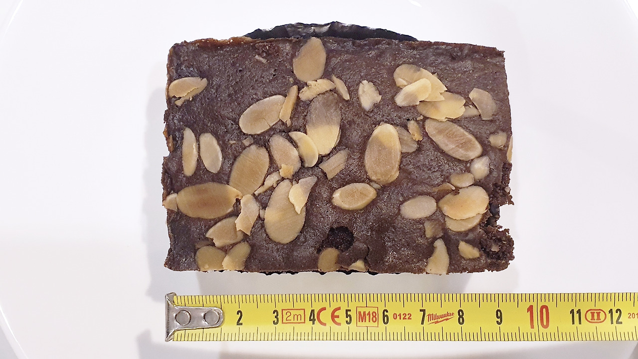 ▶ 크기 : 세로 9cm 가로 4cm 정도로 브라우니 케이크보다 크기가 작지만 속이 꽉 차 시럽을 넣지 않은 모카 한잔과 알맞게 먹을 수 있는 양이다.