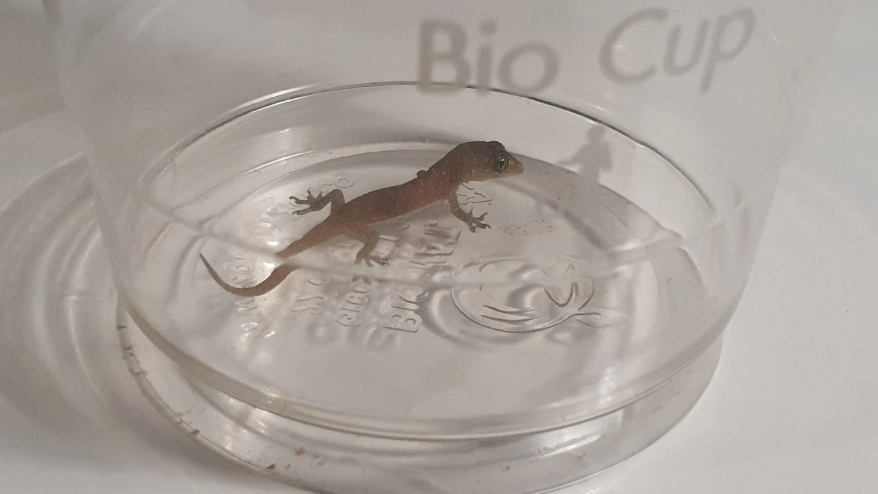 게코를 속이기 위해 못 본 척하며 계단을 올라가 녀석이 방심하고 있을 찰나 뒤에서 플라스틱 통으로 보기 좋게 잡을 수가 있었다. '도마뱀과의 수싸움에서 이겼다'는 흥분과 성취감이 교차한다. 이게 뭐라고 이렇게 기분이 좋을까.