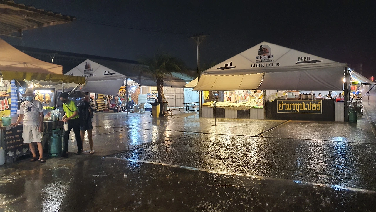 강한 비를 계속 맞다 보면 쉽게 추워지고 에너지 소비가 많아 지기 때문에 편의점에서 휴식을 취해 주도록 한다. 태국의 편의점이나 피난처카페에서 따뜻한 토스트와 커피 한잔의 여유를 즐기는 것이 필요하다.