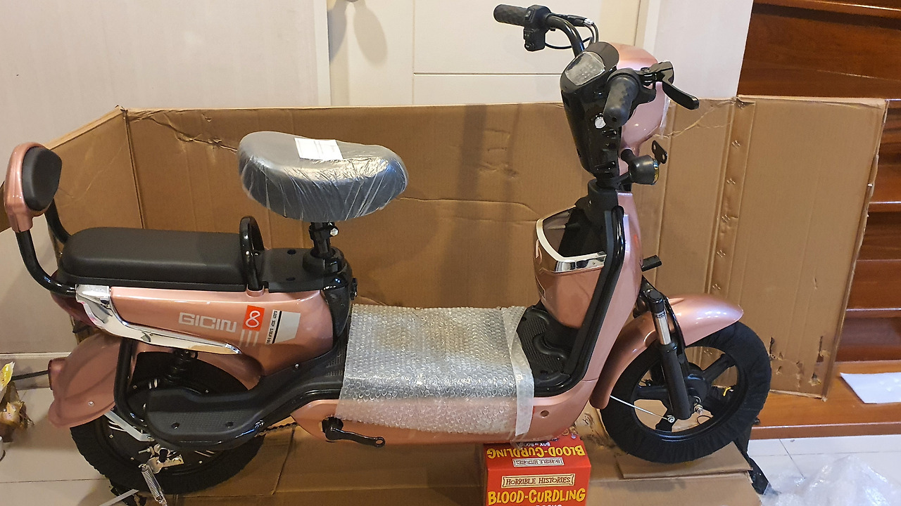 다음날 오후, 다행히 목이 길어져라 기다렸던 자전거가 도착했다. 그런데 택배 배송을 하시는 분이 젊은 여성이다. 태국이 모계사회라 그런지 직업에 있어 남성과 여성 구분이 없다. 50킬로에 육박하는 박스를 혼자서 훌쩍 들고 집안까지 넣어 주신다. 다행히 박스는 파손되지 않고 무사하니 한숨 놓인다. 이제 아내의 뽑기 운을 확인할 차례. 그 운이 통했는지 박스를 뜯고 6시간 후, 우여곡절 끝에 조립을 겨우 마무리할 수 있었다.