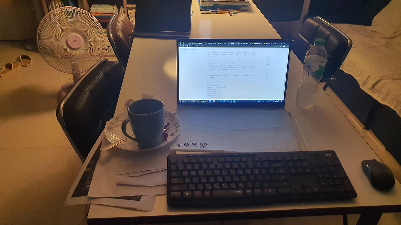 나 같은 글쟁이들에게 필요한 소품들이 몇 가지 있다. 깊이를 알 수 없는 커다란 머그컵에 가득 담긴 온기 없는 블랙커피, 먼지 가득 낀 채 '덜덜덜' 소리를 내며 어디를 향해 돌아가는지 바람도 잘 오지 않는 선풍기, 주변 사물만 확인할 수 있을 촛불 정도 밝기의 스탠드 램프, 그리고 음악이다.
