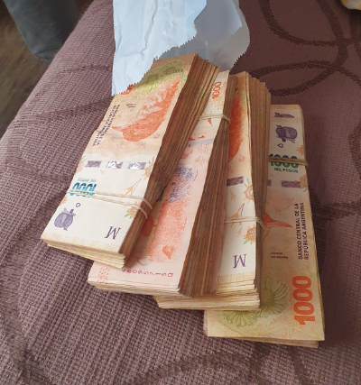 1100달러 환전 539장의 1000페소가 생겼다.