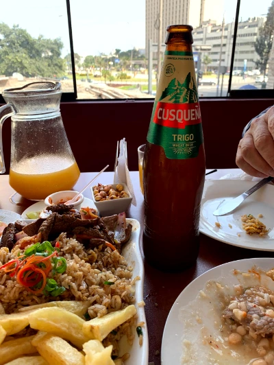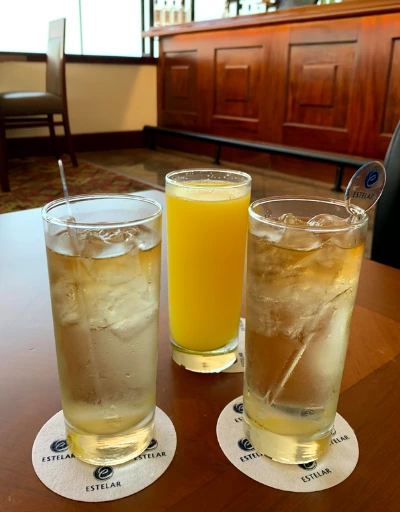 chilcano de pisco 두 잔과 엄마의 오렌지주스