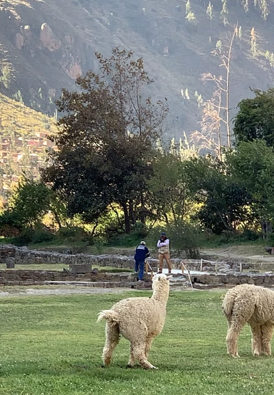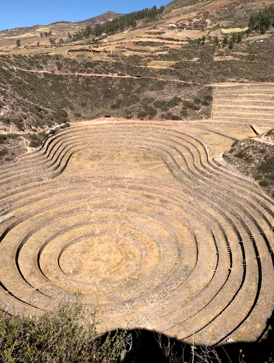 계단식 경작지에 반대편에 보이는 사람 얼굴 모양의 돌산, 전체적으로 라마 모양으로 만든 곳이었다.