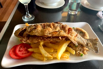 엄마 아빠는 국수를 또 시키고, 나는 다른 테이블을 보고 생선 튀김을 시켰다.
