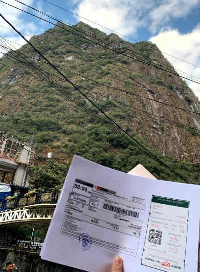 버스를 기다리는 동안 직원이 마추픽추 입장 티켓을 미리 확인하고 도장도 찍어준다.