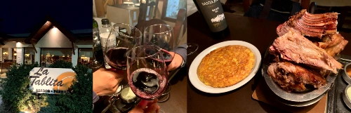 (양고기 아사도, 계란 감자 오믈렛?, 샐러드 두 번, 와인 두 병 전부 36000페소 75달러...!!!)