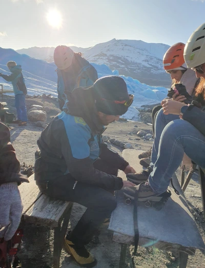 가이드들이 관광객 한 명씩 아이젠을 모두 신겨주었다!