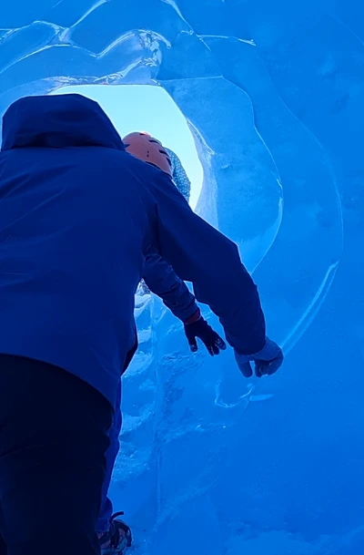 빙하 골짜기라고 불리는 크레파스도 보고 빙하로 만들어진 미니 동굴? 터널? 도 들어가 보았다.