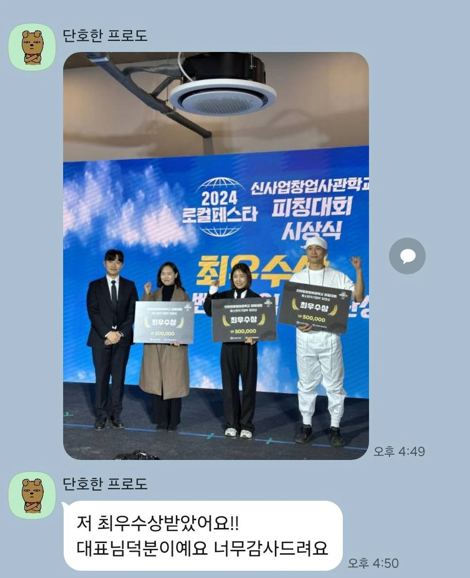 대표님의 장점을 더 잘 표현할 수 있는 부분에 집중하여 성과발표회 자료를 봐드렸고요.
