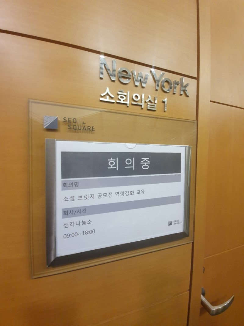 서울 스퀘어 지하에 맛집 엄청 많은데, 처음으로 신분증 제시하고 오피스로 올라갔네요. 뭔지모를 이 럭셔리함! 사회적기업은 심사역들이 보는 관점이 달라서 어제 있었던 창업콘테스트 모의 데모데이 vc님들의 심사와 다른 점을 파악할 수 있다는 것이 가장 좋았어요.