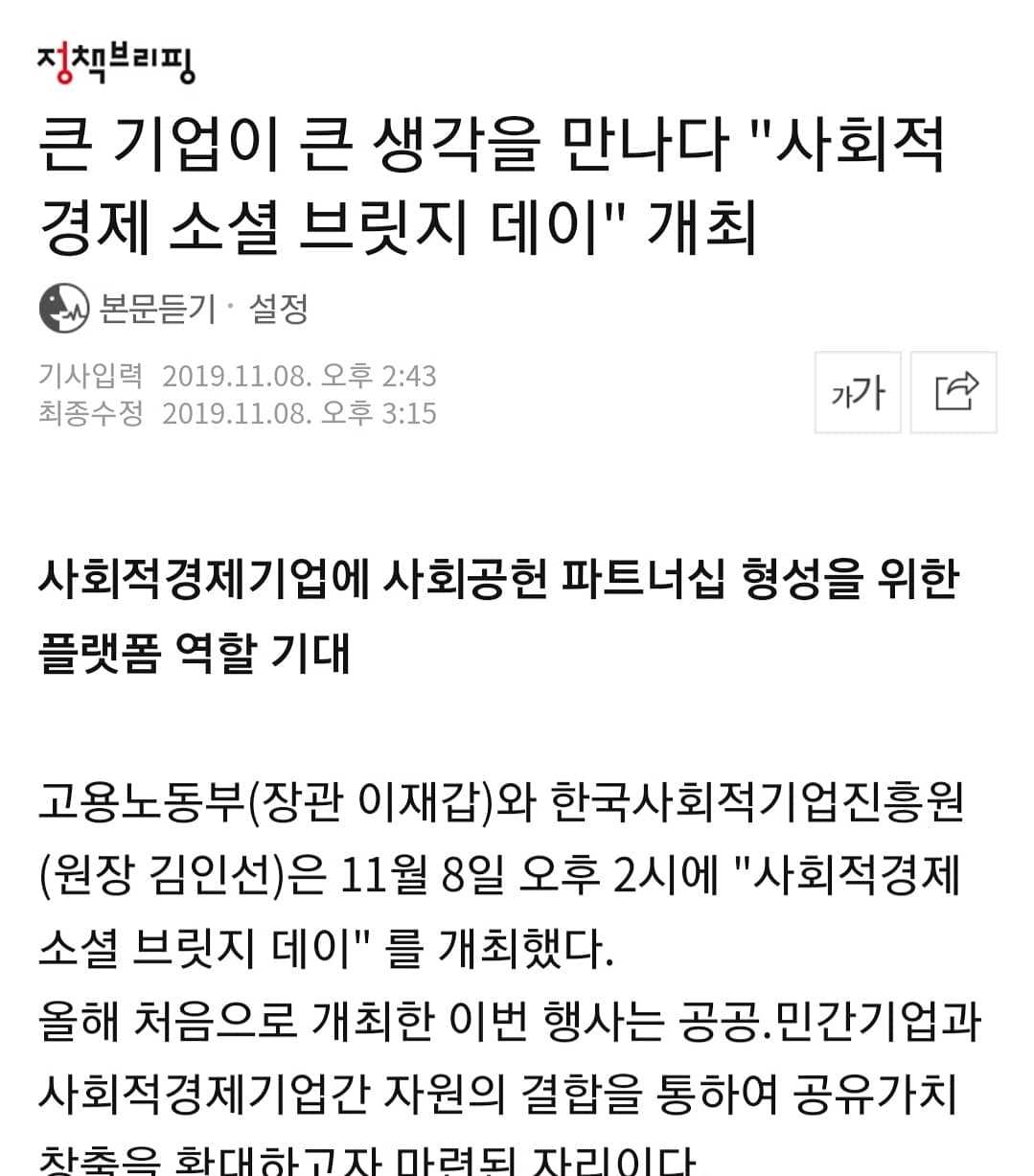 얼마전 고용노동부 주최의 사회적기업 스타트업 행사에서