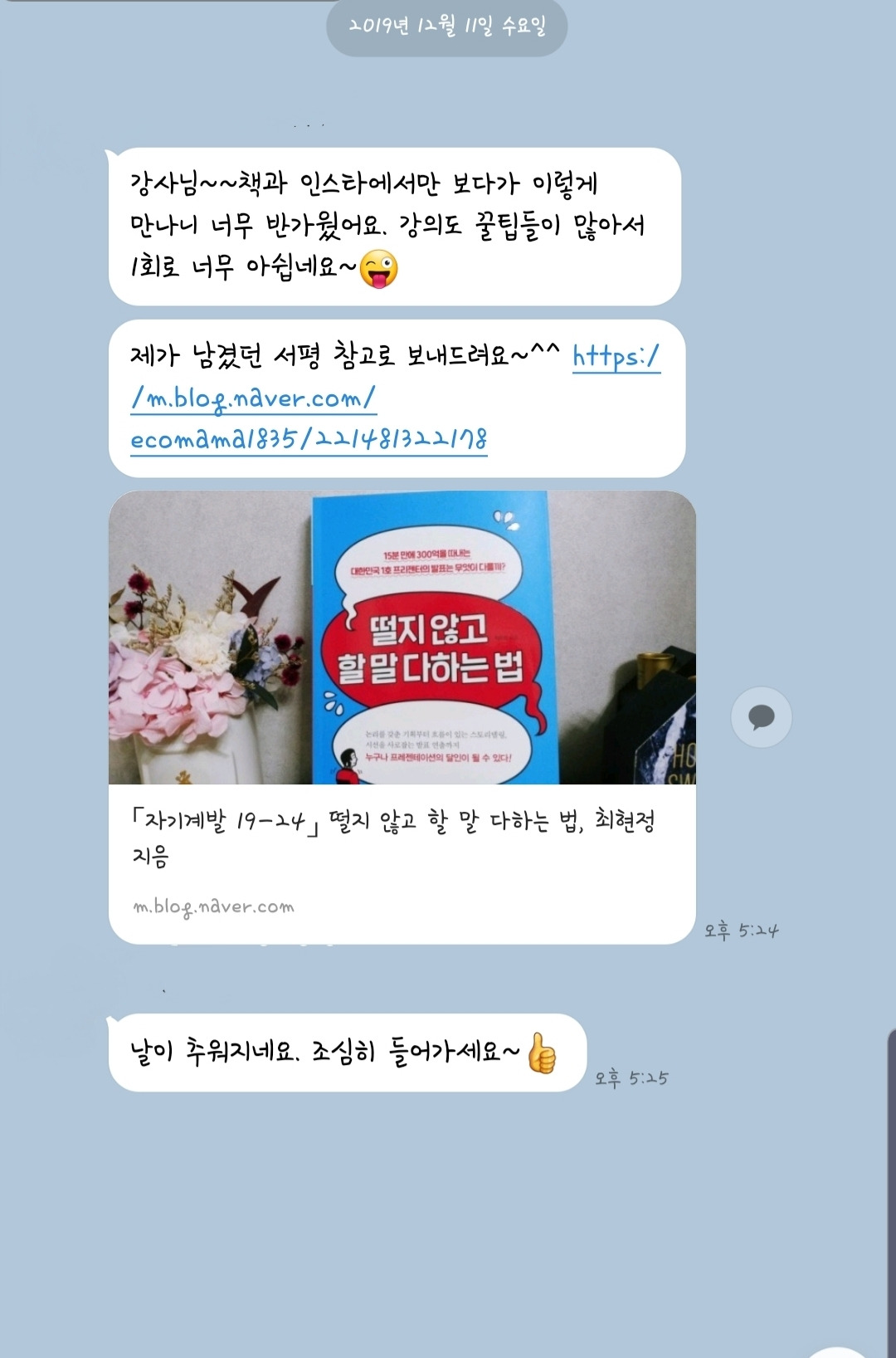 넘나 감격입니다. 책 내용에서 강의를 많이 진행하기도 하는데 척하면 척 강의내용을 알아주시는 센스!