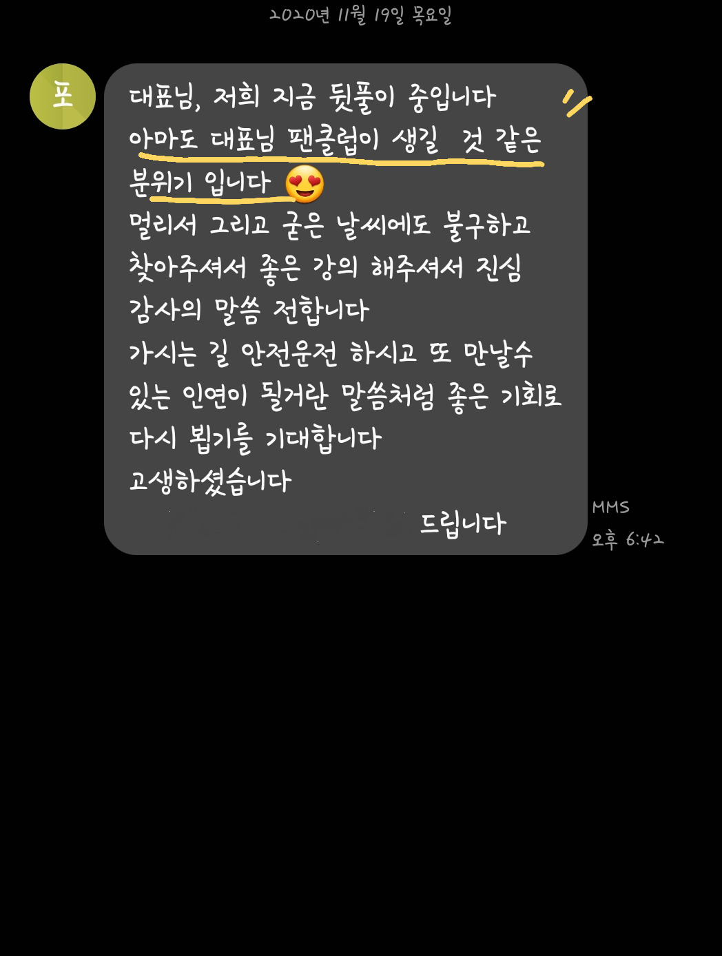 이번 교육 담당자께서 "이런모습 처음본다"며 다음에도 뵙자고 해주셨죠.