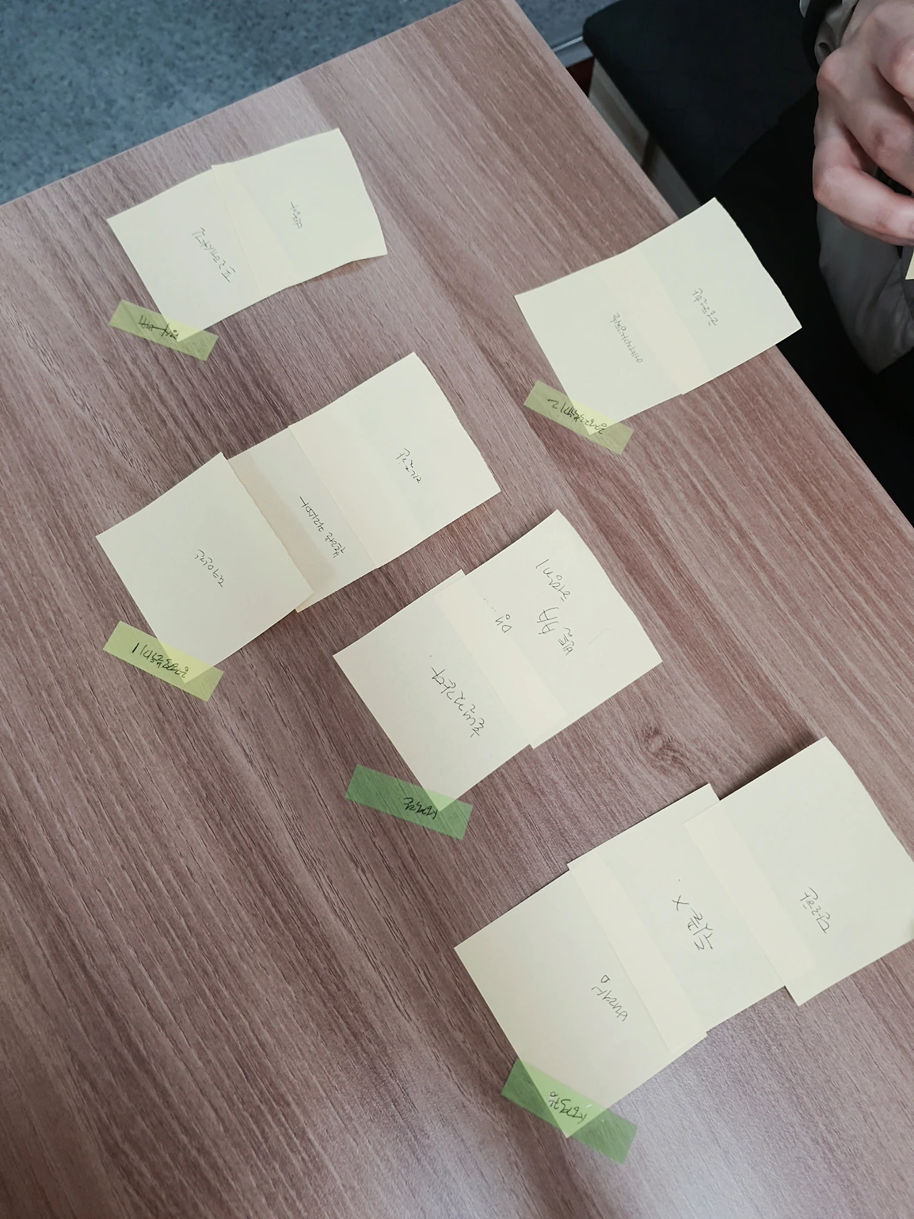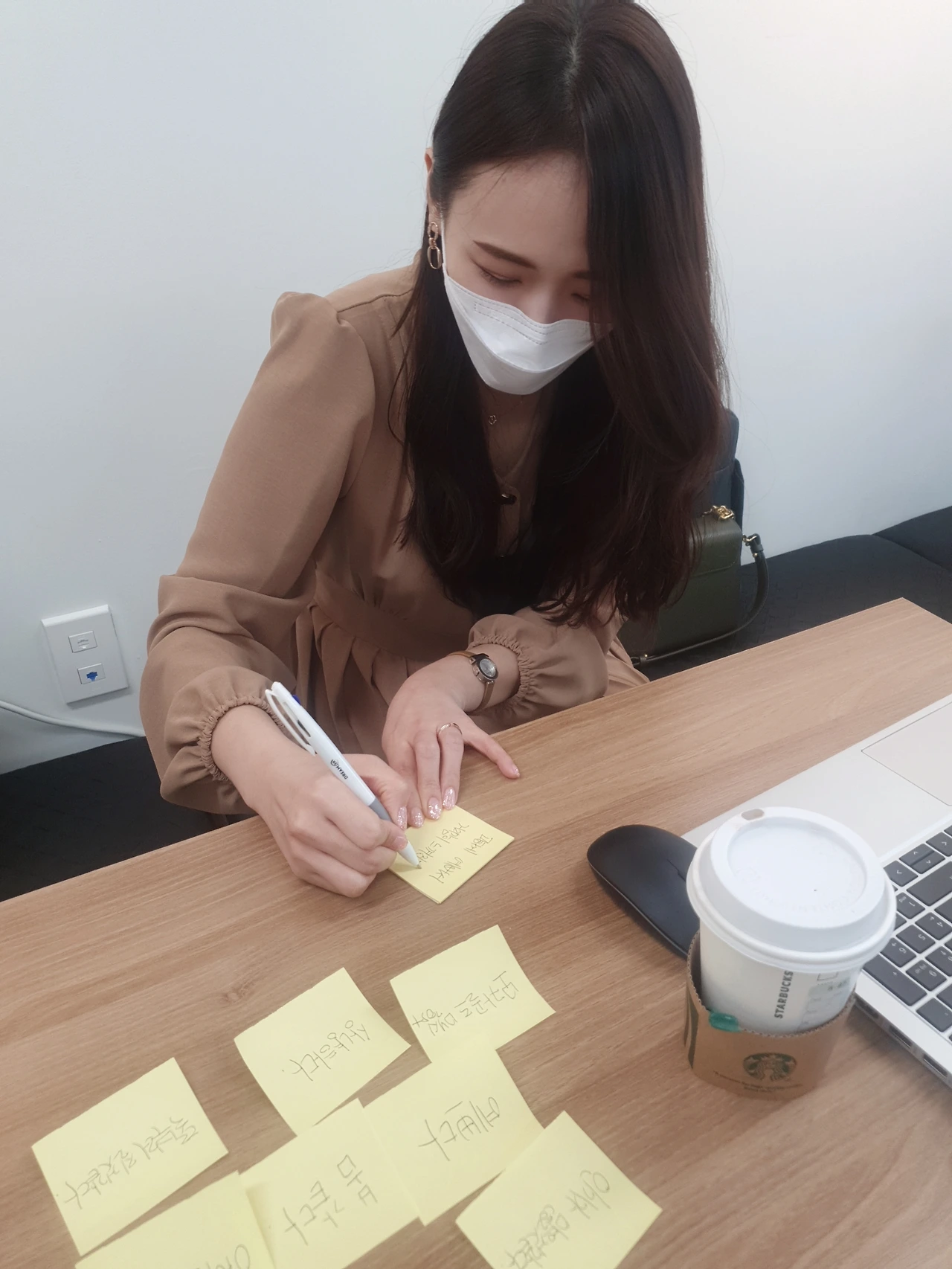 1기와는 오프닝 클로징 강의전에 지난시간에 못한 포스트잇으로 전략짜기 실습을 했습니다.
