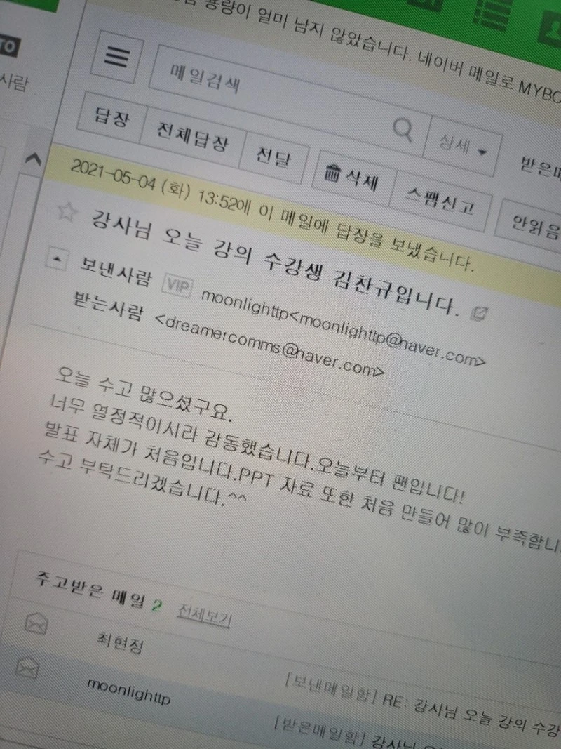3시간동안 10분 쉬면서 성공적인 마무리를 통해 많은 분들의 메일을 받았습니다.