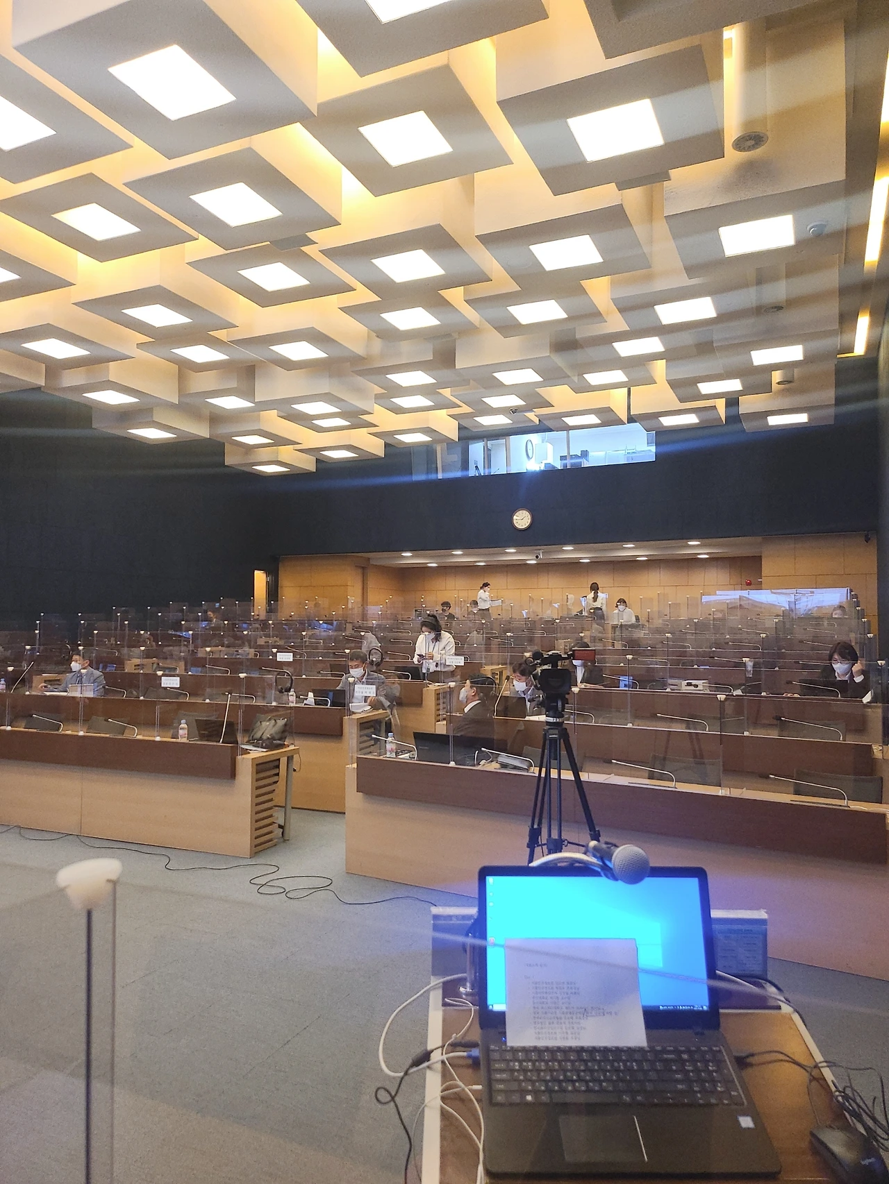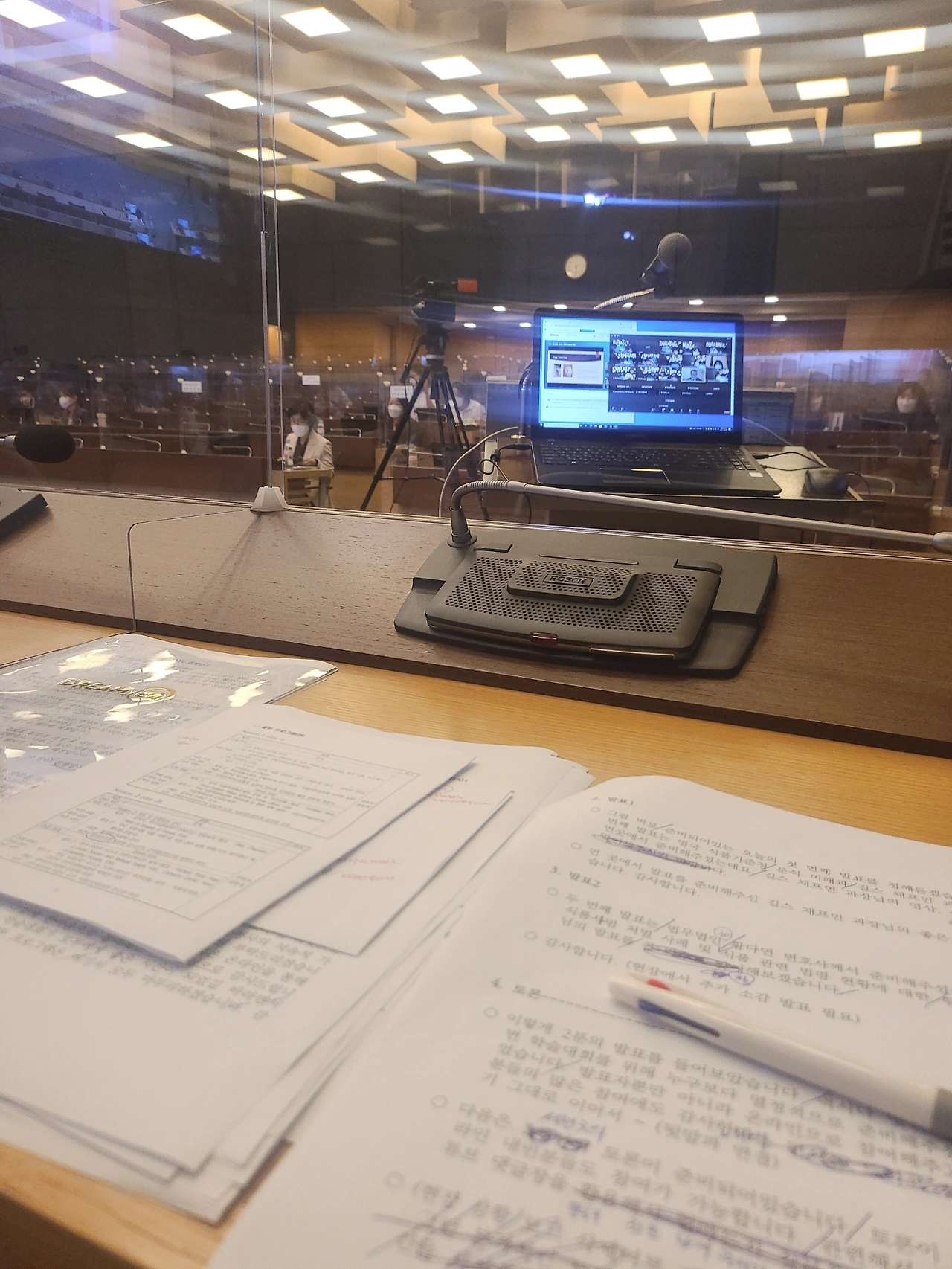 (발표멘트는 스피커 문제때문에 들을수 없고) 딜레이되는 송출화면뿐!