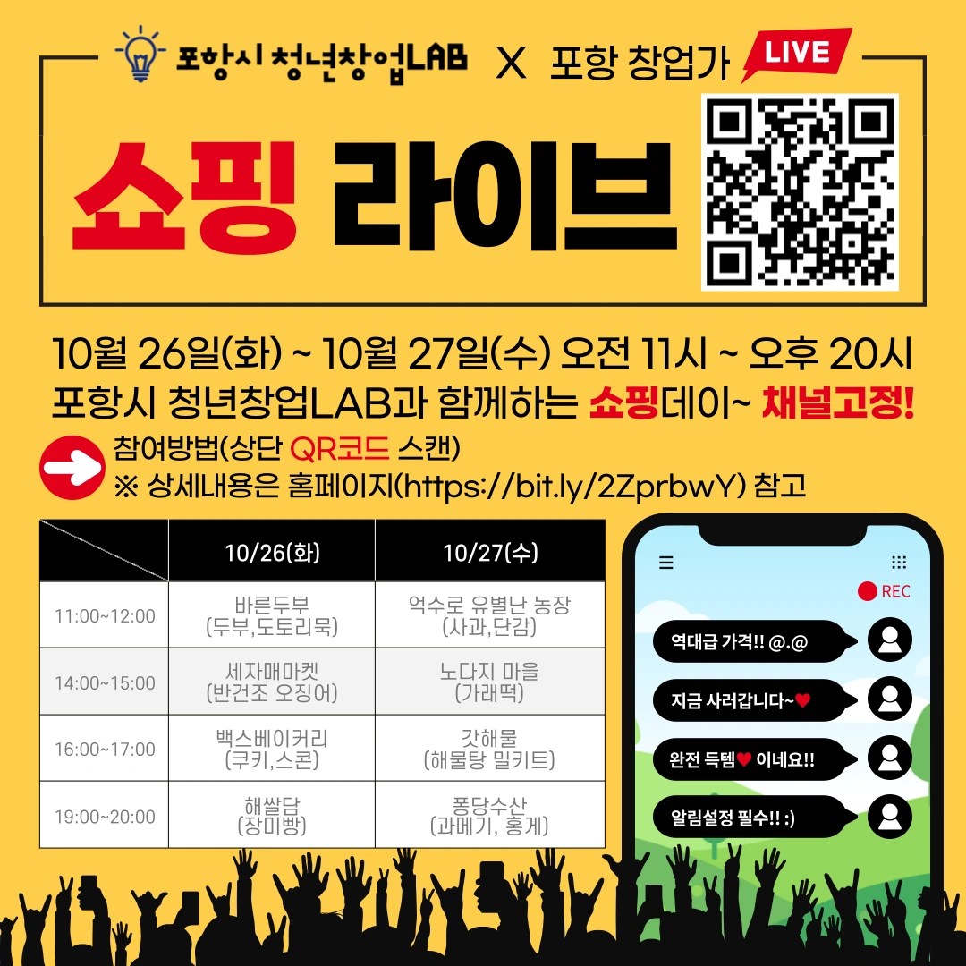 [쇼핑라이브]포항시 청년창업가X드리머 라이브방송 예고!