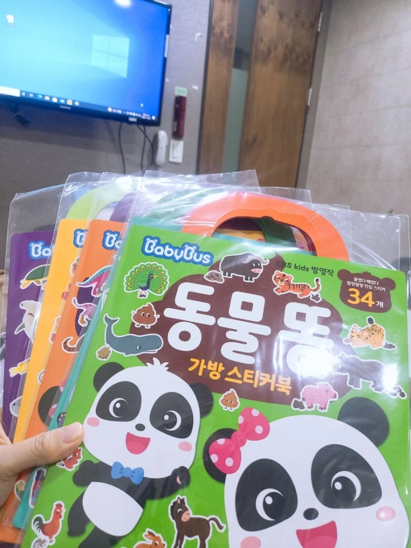 오늘은 그 말씀때문인지 너무 감사하게도 베이비버스 스티커북세트를 선물로 주셨어요.